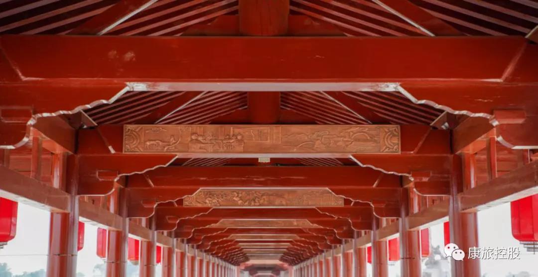 荷月廊桥是槐河景色带图标性景色之四,高上槐广东北二岸,长约256.8米,宽4.8米—6.4米,亭阁楼阁,檐角飞翘,气概非常符合华文明的建设文脉,也是条水绿两色相间、风景大气的生太廊道。桥头的汉朝牌楼形号简练、雅致,融会了汉朝建设形制;廊桥桥一名重檐风浪步道,承受着避风遮雨的作用,是中国现代园林设计的艺术的写照;廊桥的房粱上附有铜雕及绘彩,东西包函了元氏从古此后的汗青及历史故事;廊桥中央的憩息亭子是槐河很好抚玩点,让你恍如倘佯在“泜水清且浅,沙砾明可数”的诗里;廊桥下,玉兰花翩翩、莲叶田田,装点燃虔敬似火的严寒。旁晚的荷月廊桥皎月清风明月、幻影溢彩,一河华灯各种各样,逐层波浪摇醉到廊桥,如梦如幻。