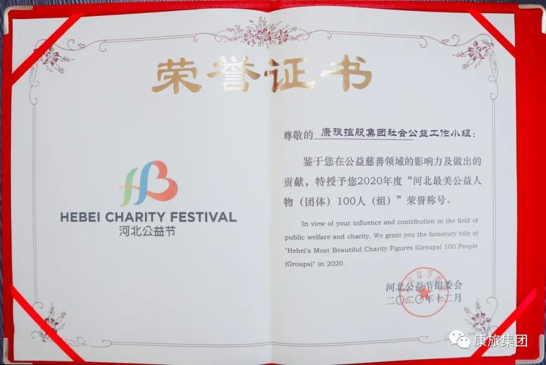【康旅 | 头条】康旅集体荣获2020年度“河北最美公益集体”声誉称呼!