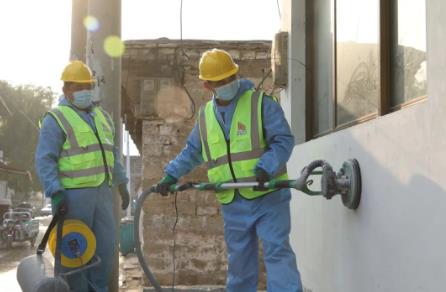 工人们分区分片施工功课
